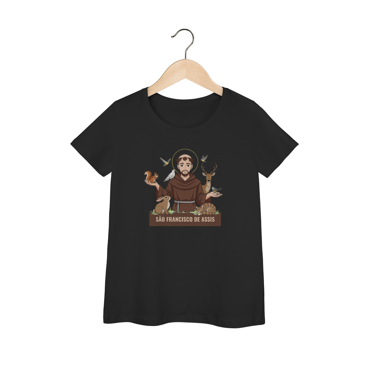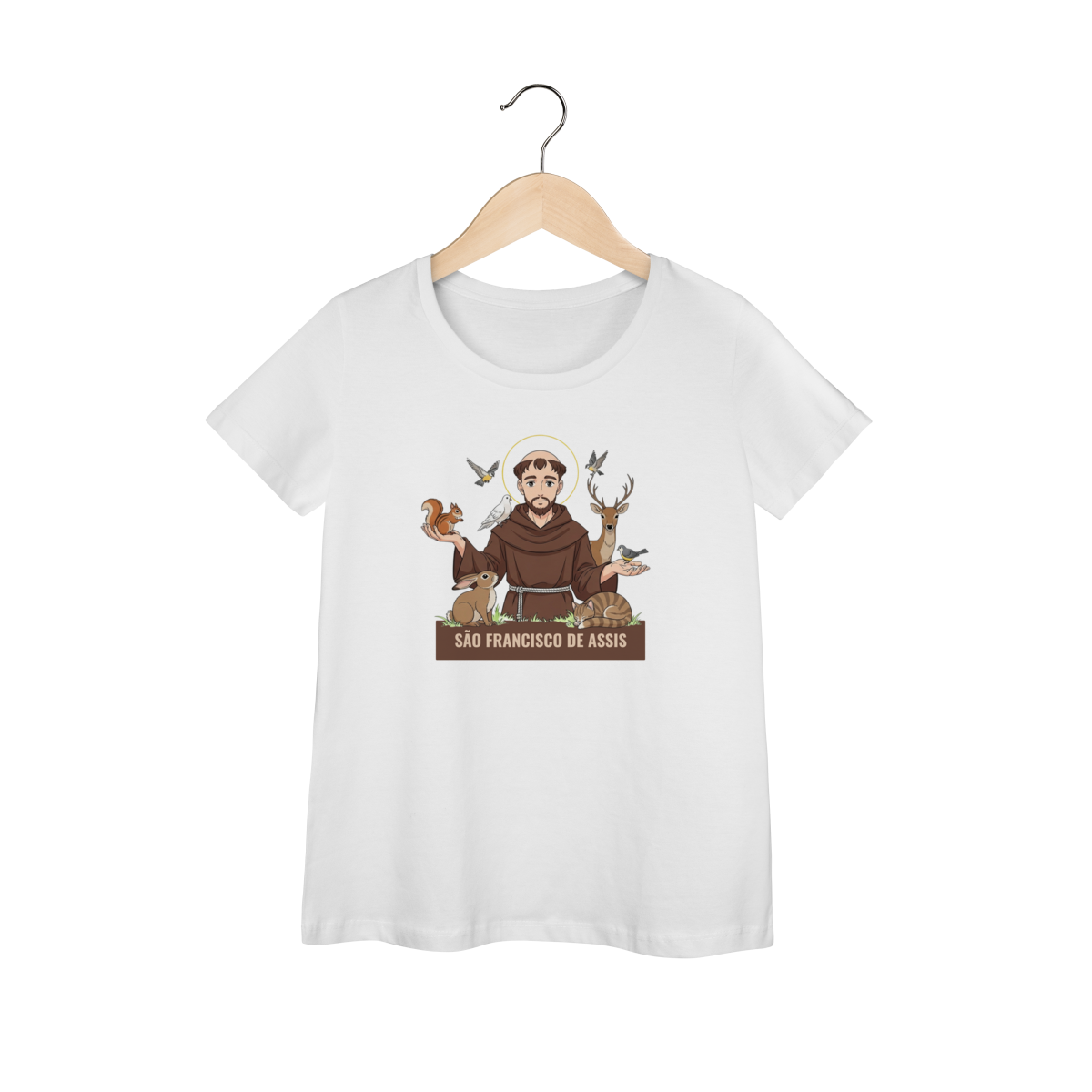 Essa camiseta baby long feminina expressa uma fé viva e sincera, perfeita para quem busca refletir os valores franciscanos no dia a dia.