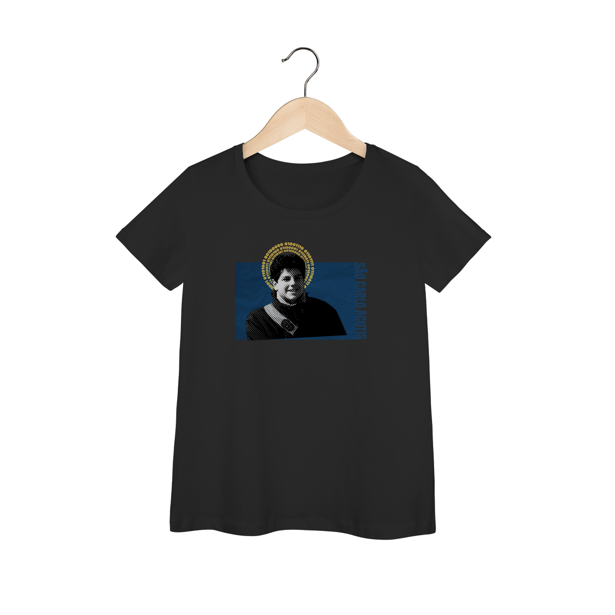 Esta camiseta celebra a vida de Carlo Acutis, o jovem santo que uniu a tecnologia à fé, tornando‑se exemplo para gerações.