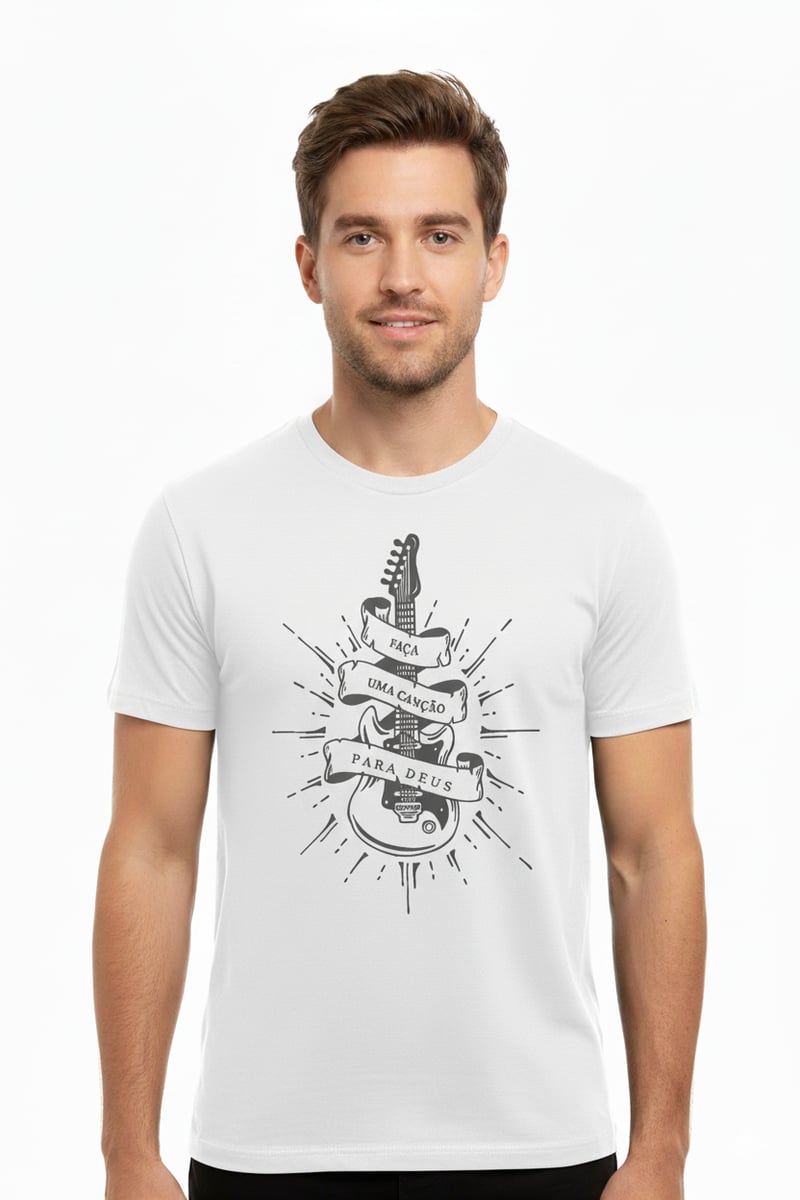 A camiseta “Faça uma Música para Deus” é um convite à adoração e à criatividade guiada pelo Espírito Santo.