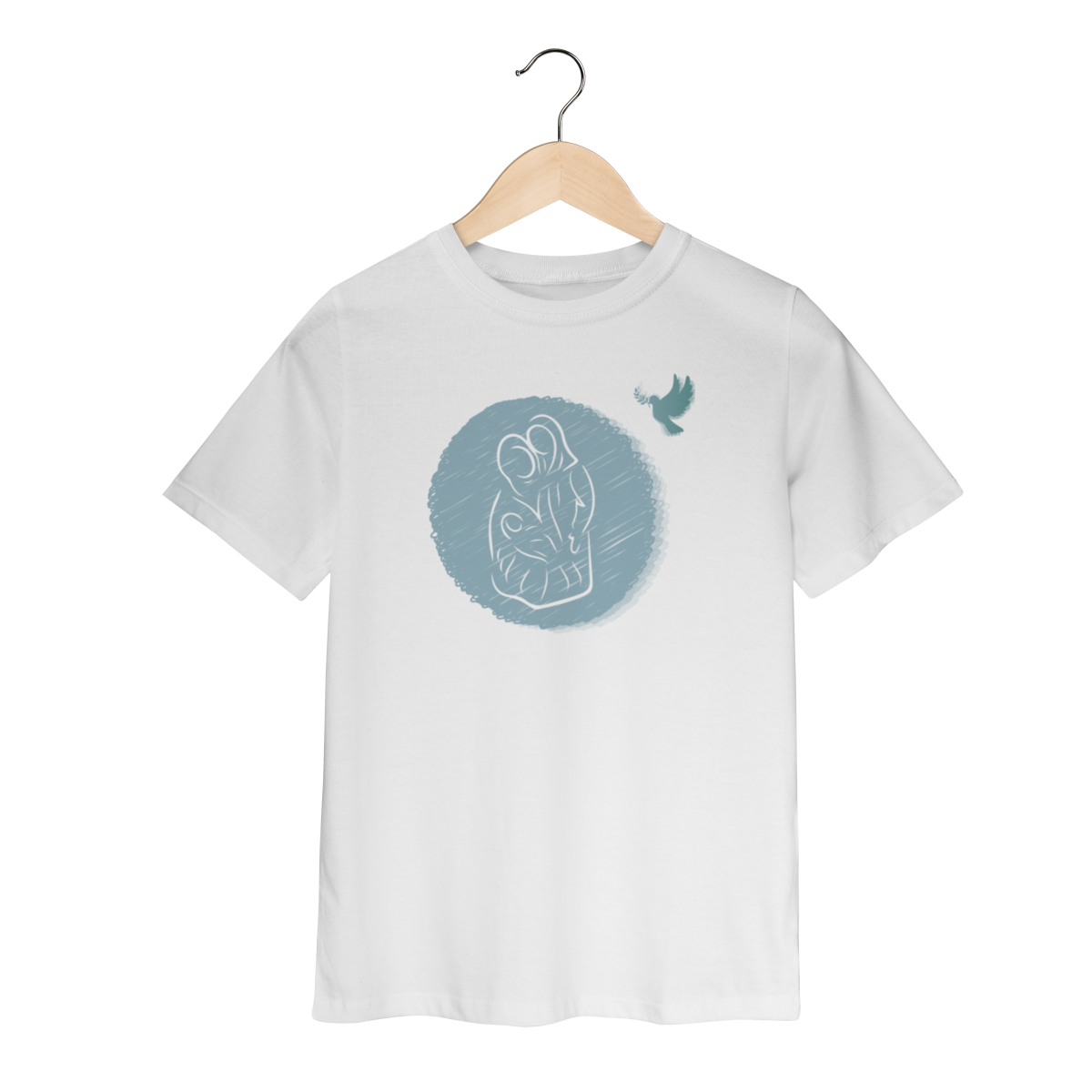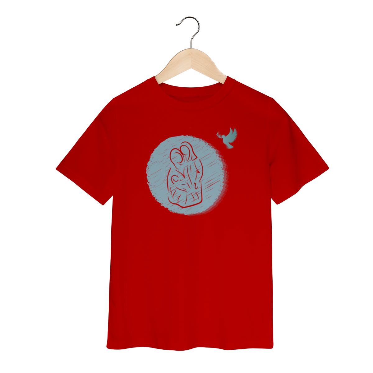 A camiseta Sagrada Família com o Espírito Santo celebra a união perfeita do amor de Deus no lar cristão.