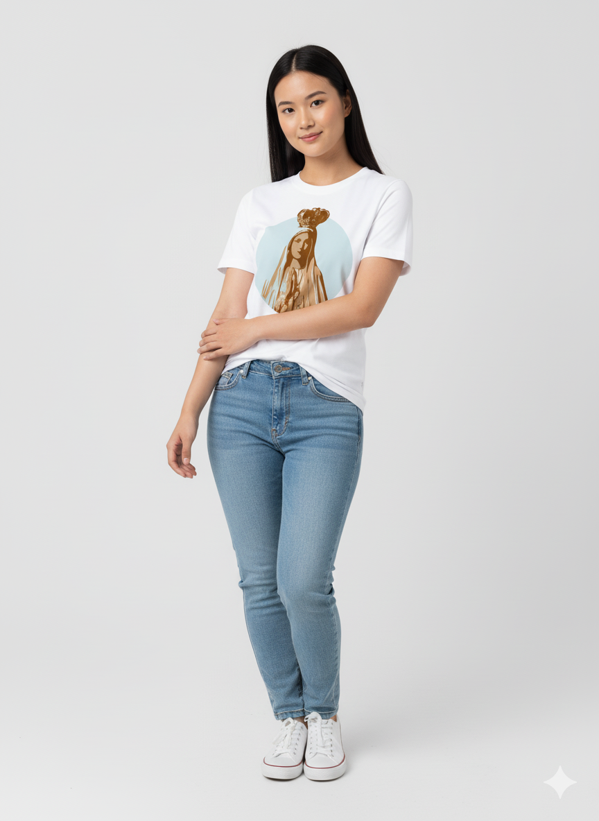A camiseta Nossa Senhora é um símbolo de fé, proteção e amor maternal de Maria.