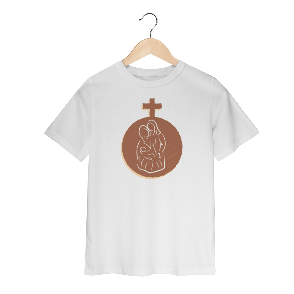A camiseta Sagrada Família com cruz celebra a união, a proteção e a fé que guiam o lar cristão.
