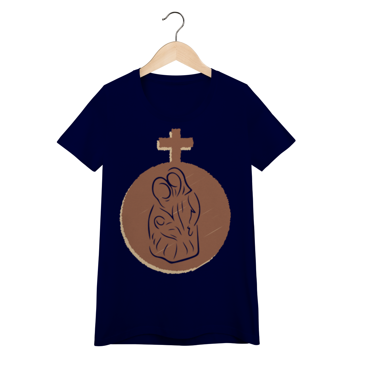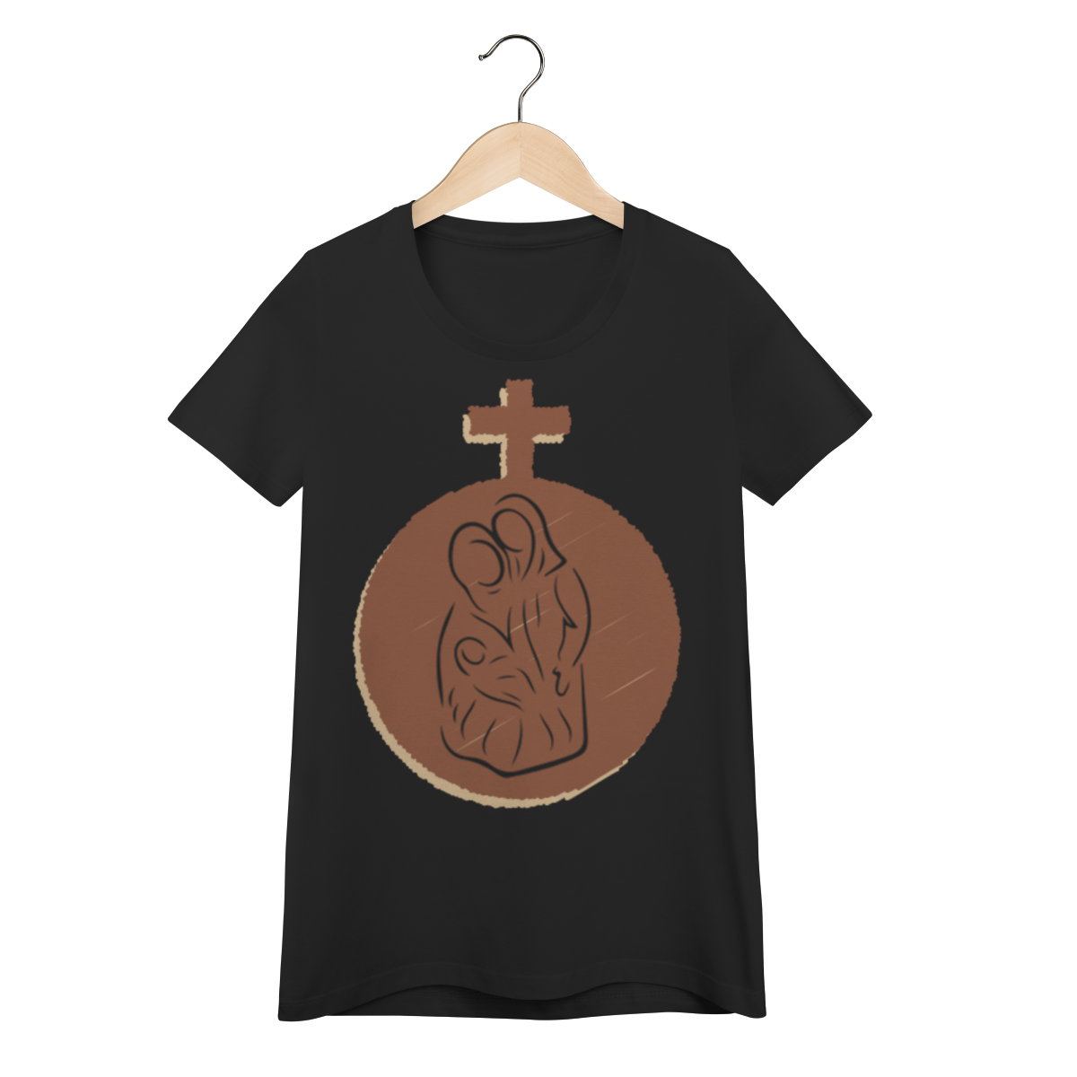 A camiseta Sagrada Família com cruz celebra a união, a proteção e a fé que guiam o lar cristão.