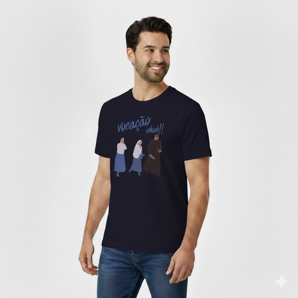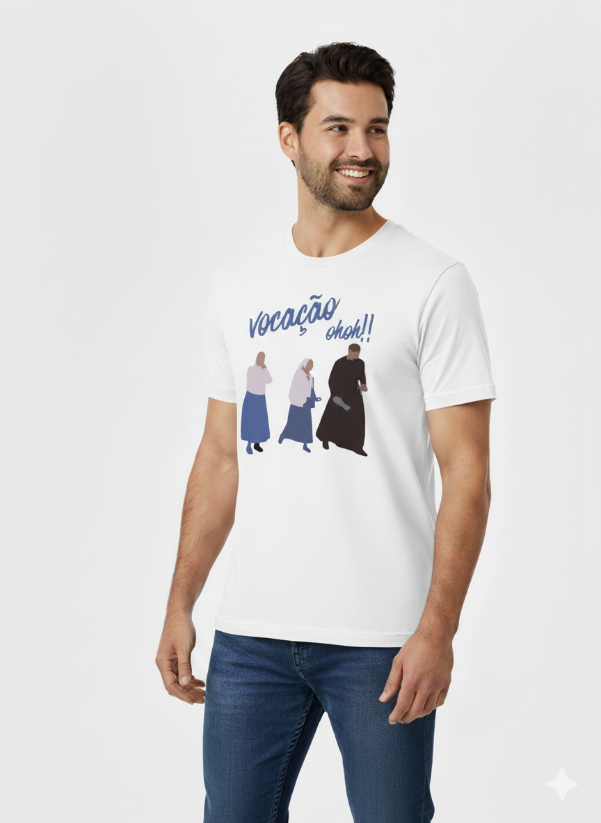 A camiseta “Vocação Oh Oh” é um lembrete divertido e profundo de que seguir a vocação é responder com alegria ao chamado de Deus.