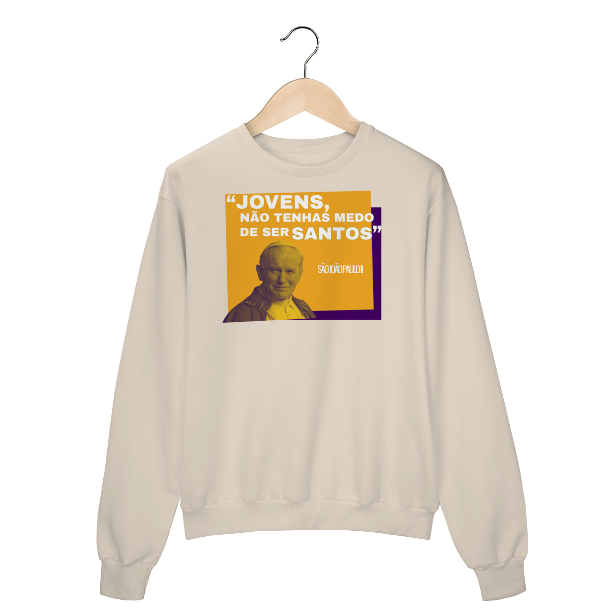 Uma moletom inspiradora que carrega o legado de São João Paulo II, o Papa que marcou gerações com sua fé e coragem.